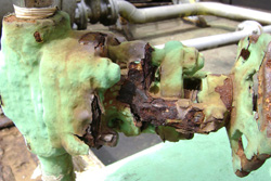 Corrosão atmosférica em válvula gaveta exposta atmosfera marinha. |